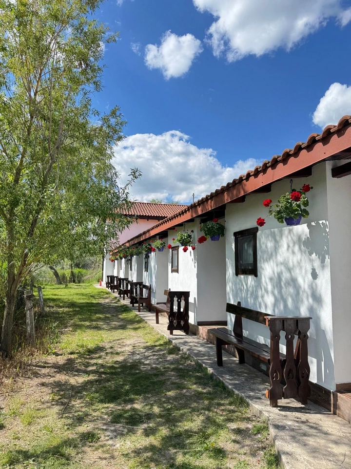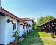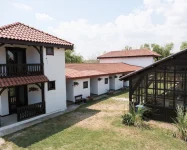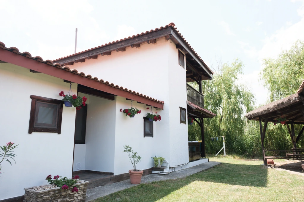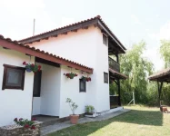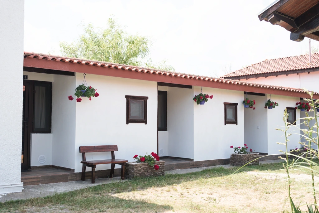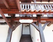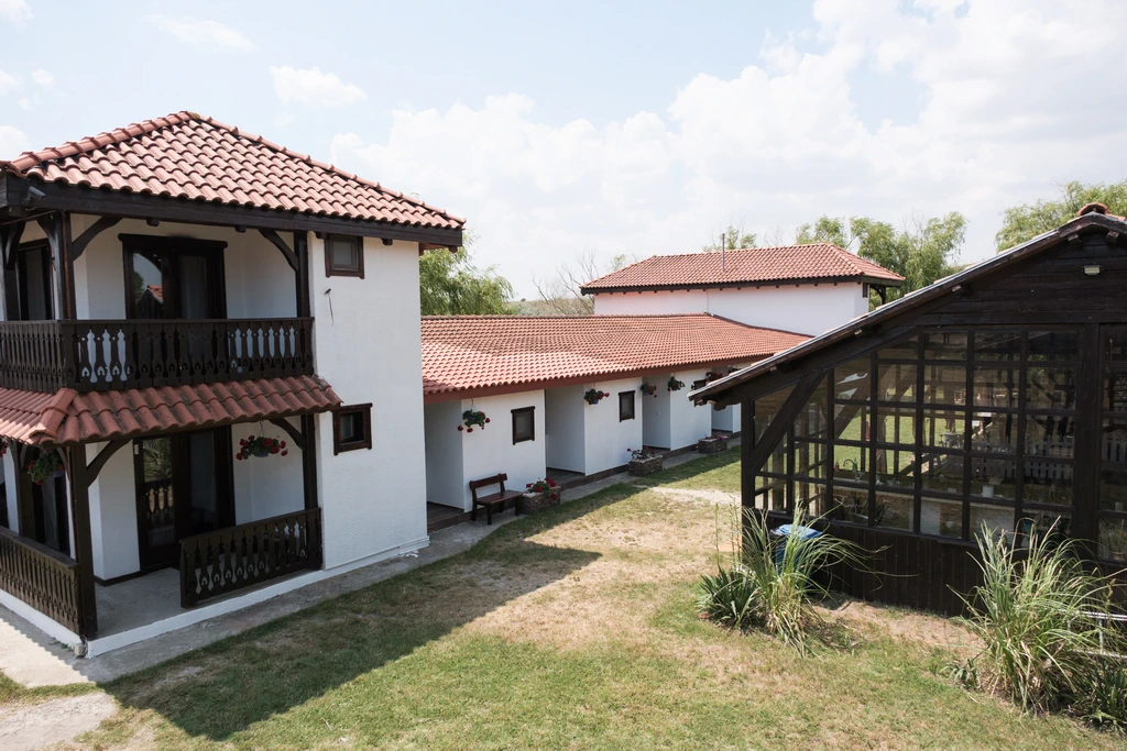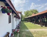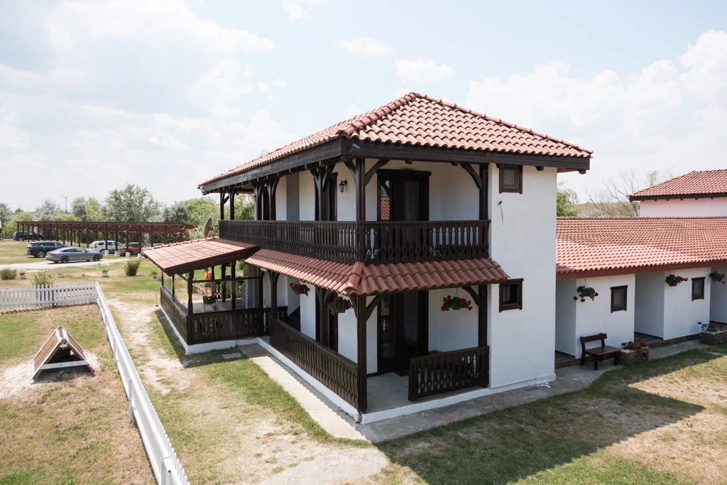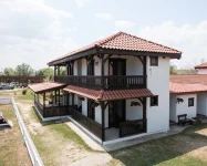 Casa noua cu zidarie, olana si pridvor din lemn traforat specific manastirilor din nordul Dobrogei.