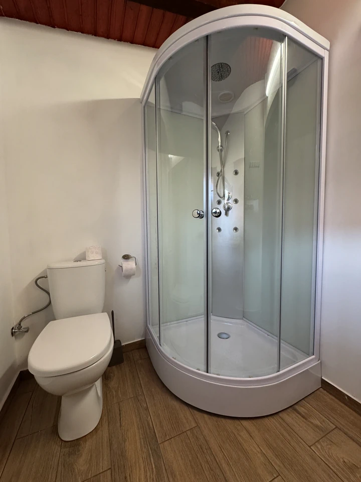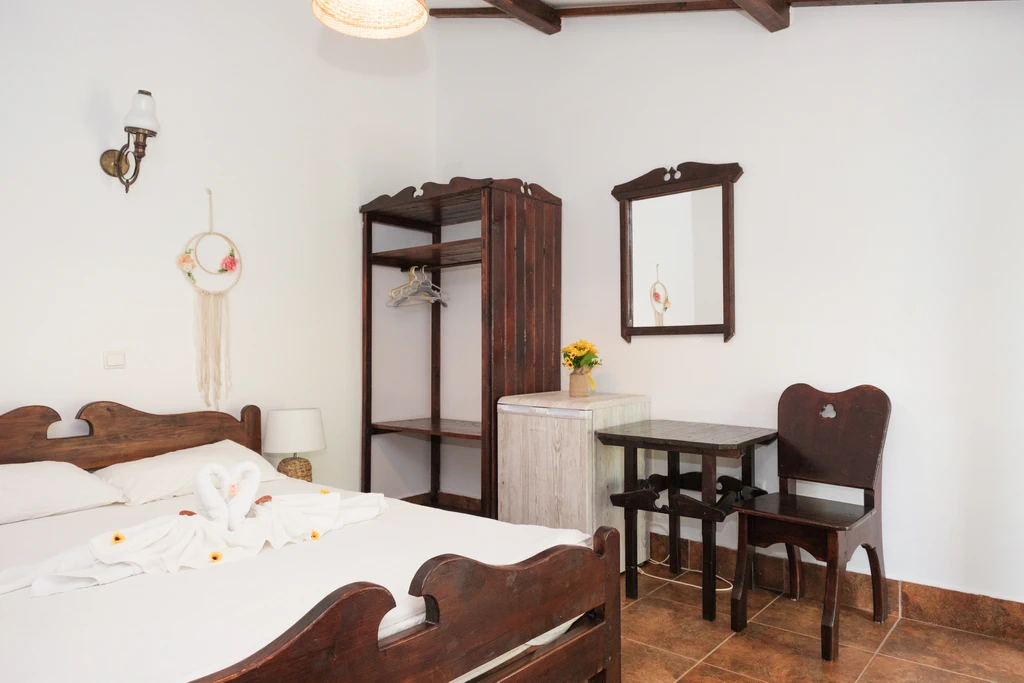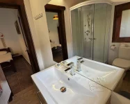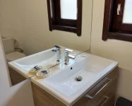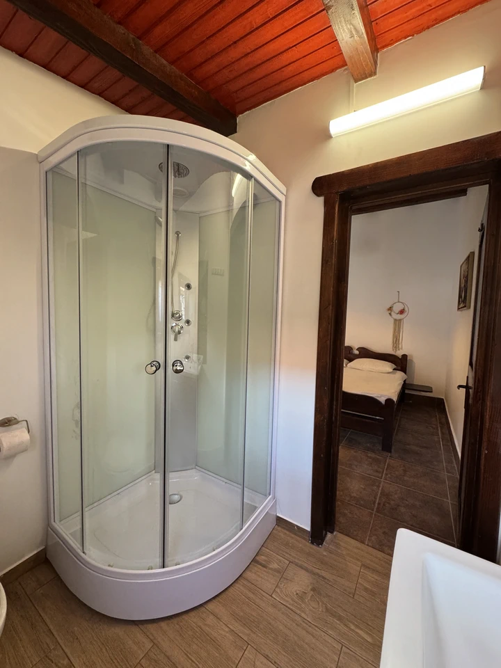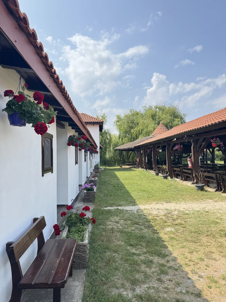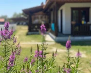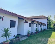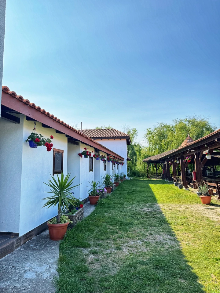 Casa noua cu zidarie, olana si pridvor din lemn traforat specific manastirilor din nordul Dobrogei.