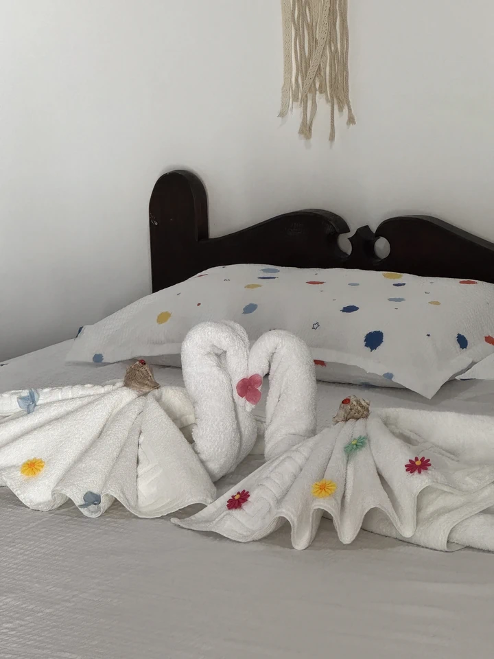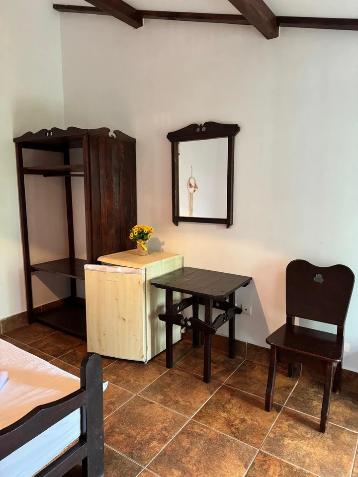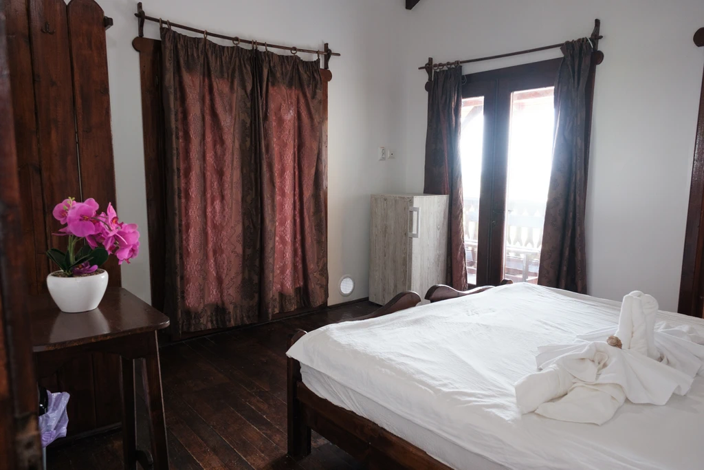 Este alcatuita din nouasprezece camere, trei cu vedere spre mare, una la parter, doua la etaj, patru camere cu vedere spre lac, doua la parter, doua la etaj, sase camere la parter cu vedere spre lac, si sase camere la parter cu vedere spre foisor.